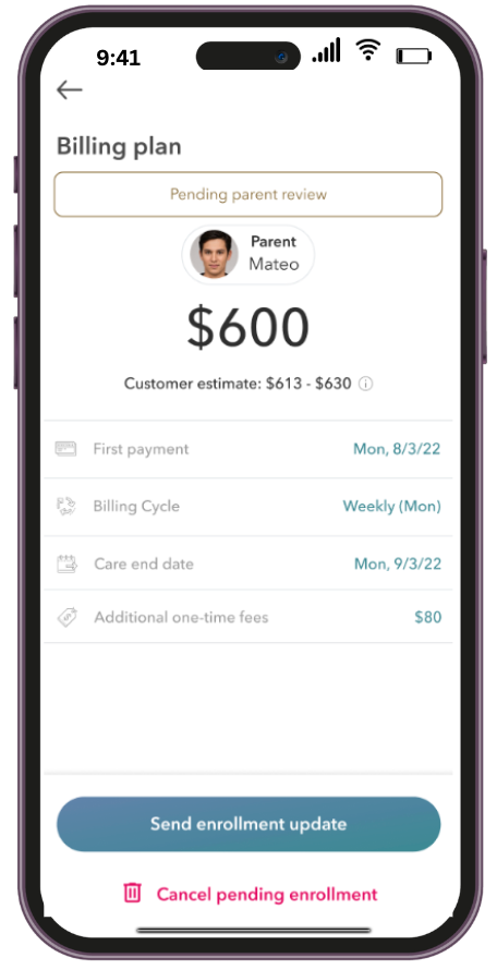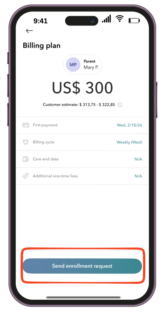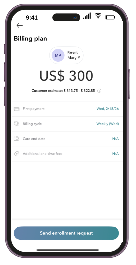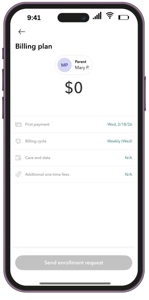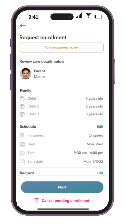 7. You can now send the Enrollment request to the family once you are certain all is correct, and wait for them to complete it or request any changes.