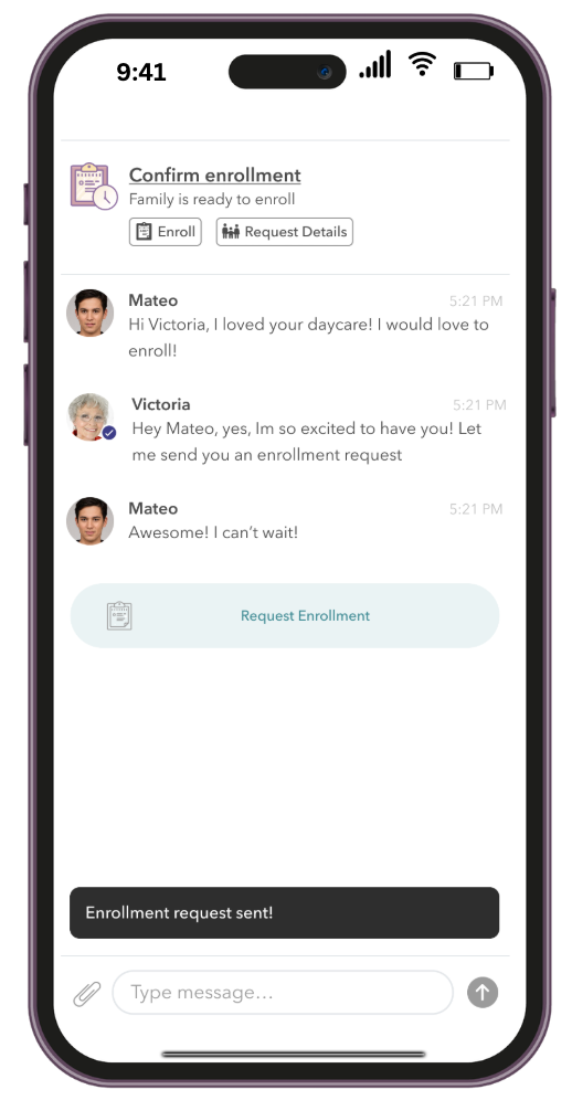 Families also have the ability to request changes to the enrollment, this will look like a normal message in your inbox.