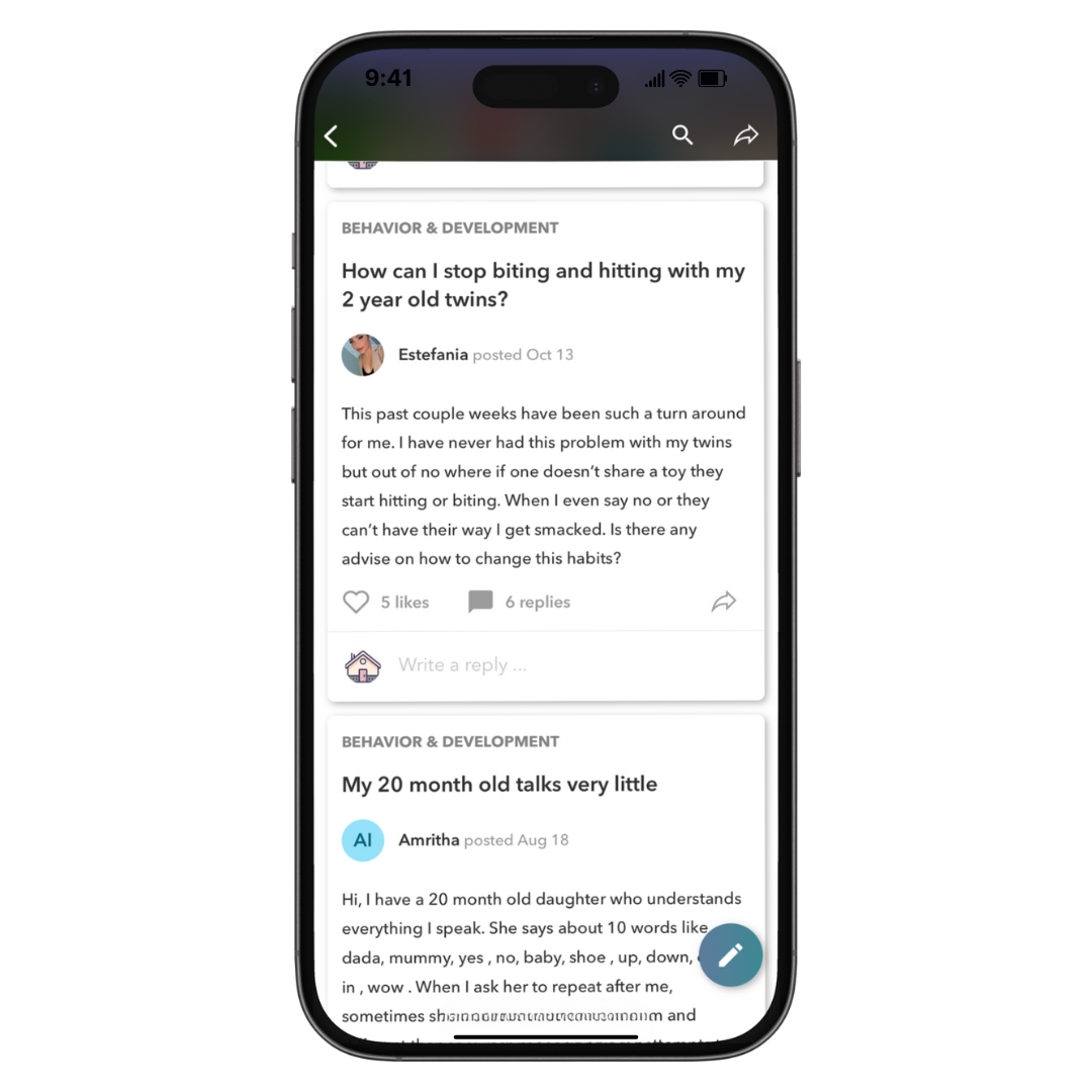 Simplemente selecciona la publicación que te interese y selecciona "Write a reply..." ("Escribe una respuesta...") para añadir tu comentario.